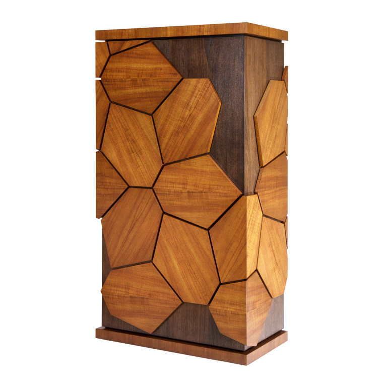 “The seven drawers are made from Hydrowood Celery Top Pine, featuring hand-cut dovetail joints. LED lighting illuminates various details when the drawers are opened and internal voice recordings further describe the piece and the unique timber it’s made from.”